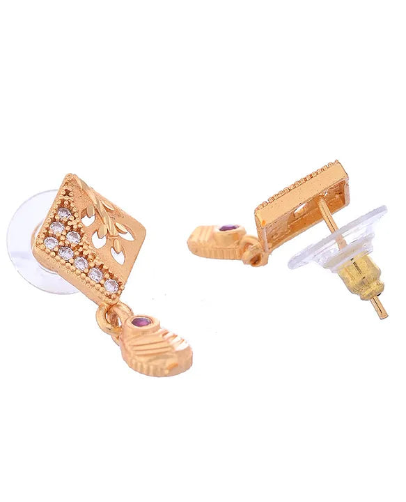 VALLEY OF JEWELLERY Gold Plated Geometrical AD Stone Studded Chain Set